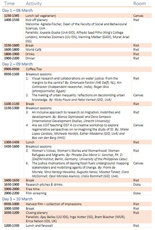 – Are we JUST teaching IDS? A co-creative workshop to explore regenerative perspectives on re-imagining the study of ID. Organised by: Mieke Lopes Cardozo, Michaela Hordijk, Esther Miedema (GID, UvA) and Bas van den Berg (HHS)